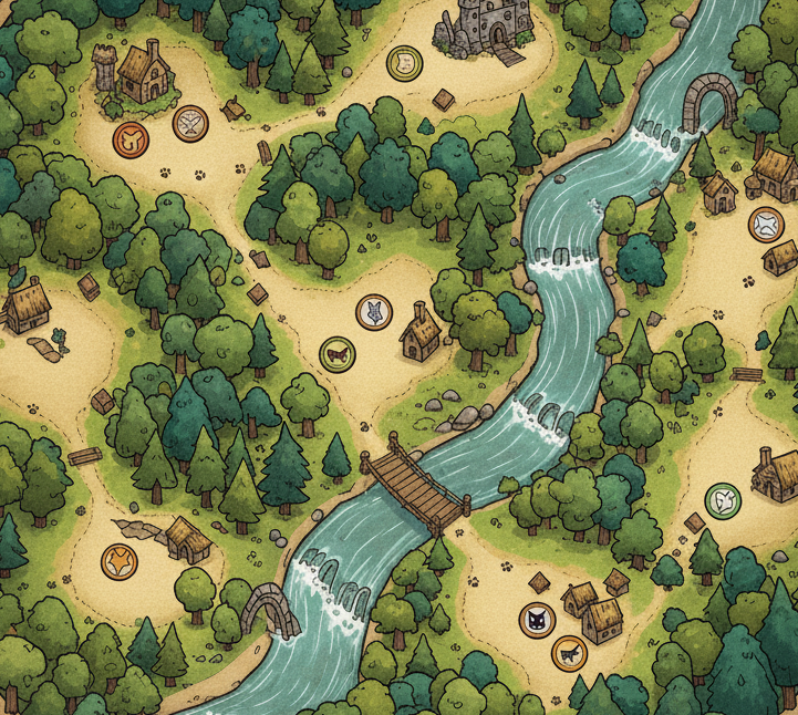 In Rootless, players find themselves in charge of a band of vagabonds, critters from across the woodland who find themselves displaced (uprooted if you will), and in an alliance of convenience, working with each other to put a warm meal in their bellies and pocket a little bit of coin to get by. While the characters in the party get along with one another well enough, the vagabonds in general are looked down upon by most of the population; they are referred to as the "rootless", creatures without a strong foundation upon which they can be relied.